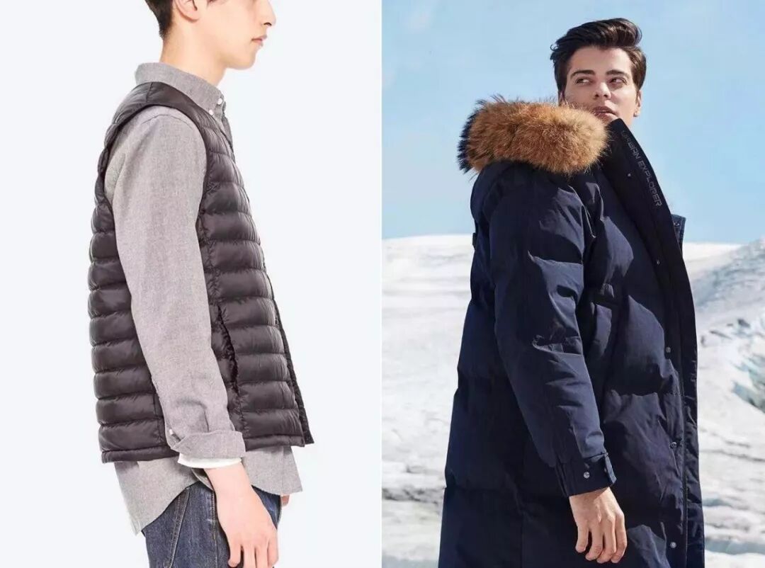 举个例子。同样是含绒量 90% 的男式羽绒服,主打室内家居场景的,充绒量可能只有 100 克;但是主打户外雪天场景的,可能至少要 300 克。