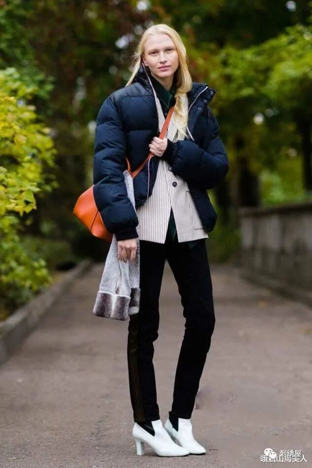 想要驾驭好南瓜色的羽绒服,需要推荐给大家两个小技巧: