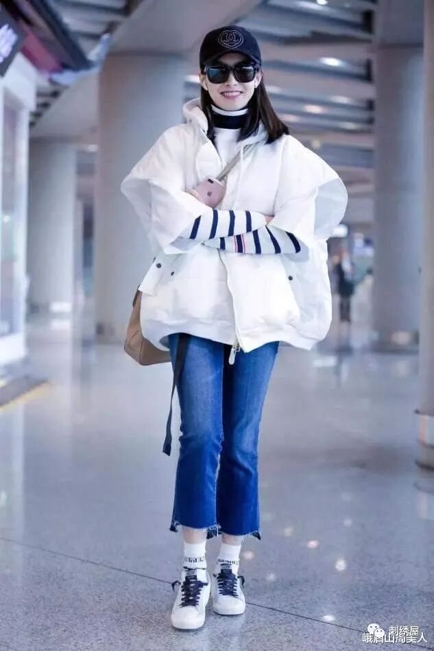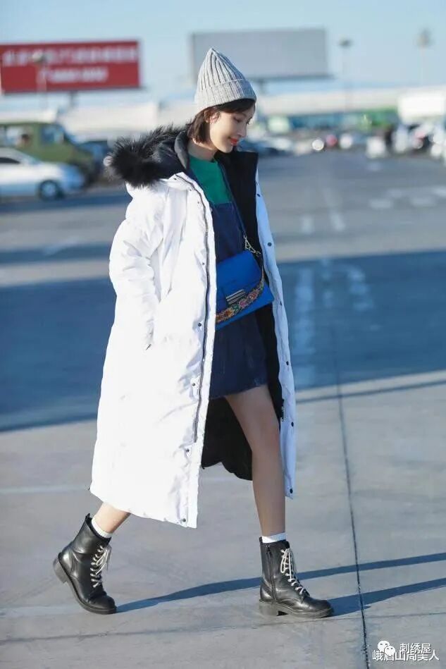白色羽绒服需要慎重选择长款,尤其是过膝的超长款羽绒服,会让你看起来像穿着棉被一样臃肿,纯洁的白色虽然高级感强,但也带有浅色系会显身材线条膨胀的缺陷,只要我们把握好羽绒服的长度,就可以让整套造型完美契合时尚感。