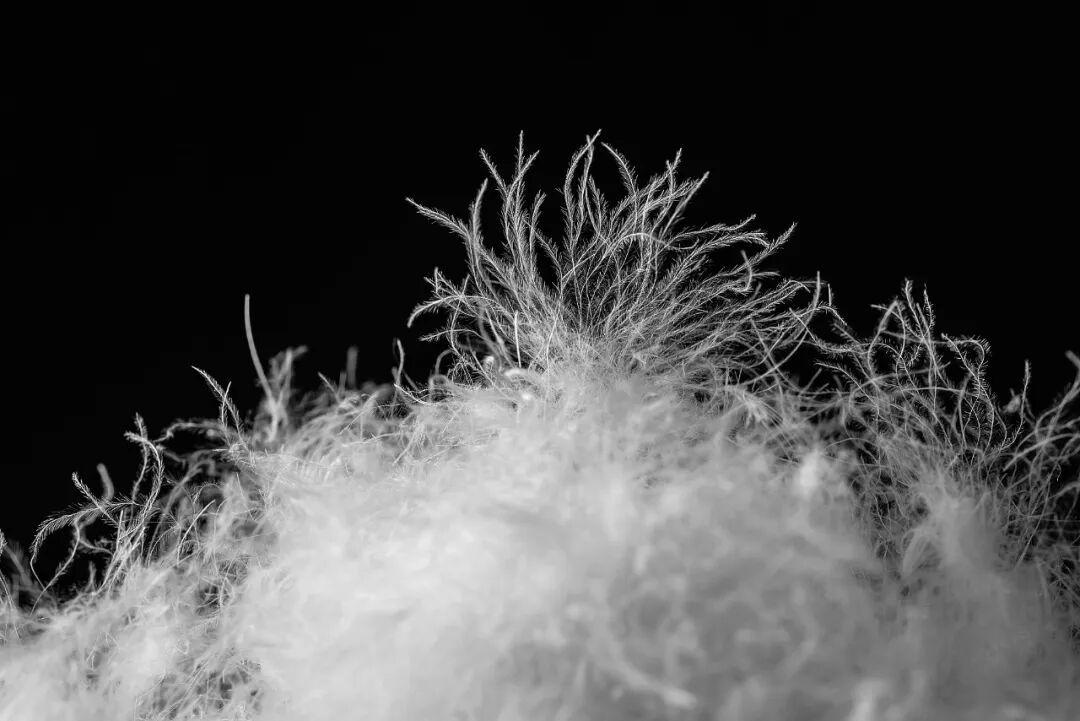 ·绒子:朵绒、未成熟绒、类似绒和损伤绒的总称,呈蒲公英小伞状,比较蓬松,是一朵羽绒中最优质的部分。