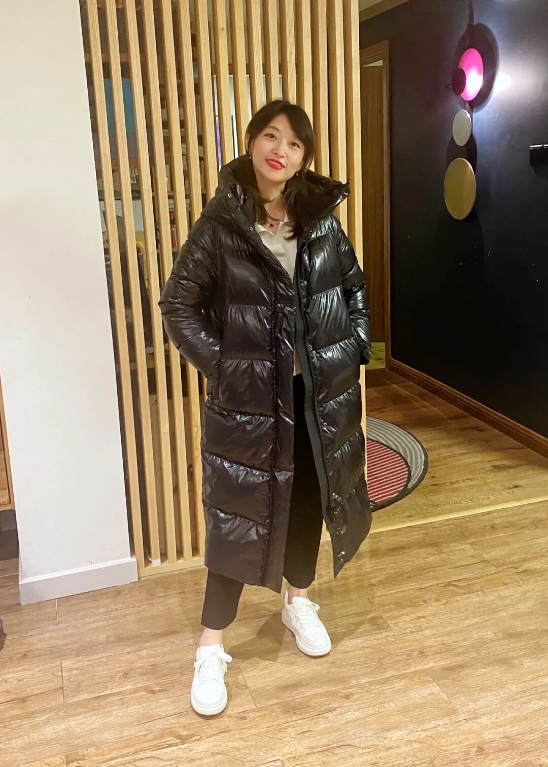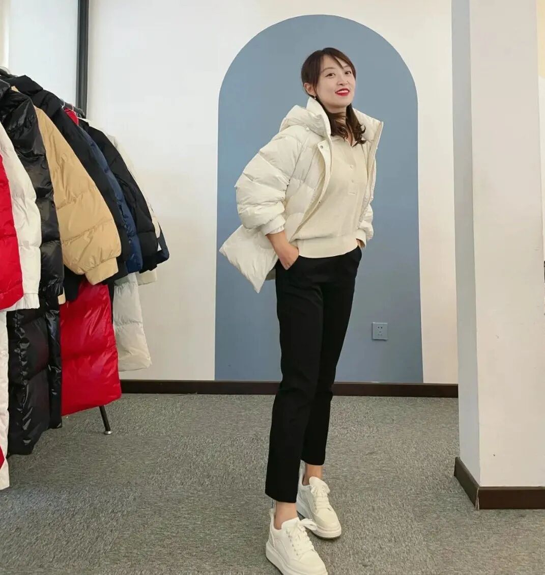 另外同样是经典黑白色,不得不说一句,姐妹们亮面的羽绒服真的是非常减龄,瞬间就能让整个人都欢快起来。