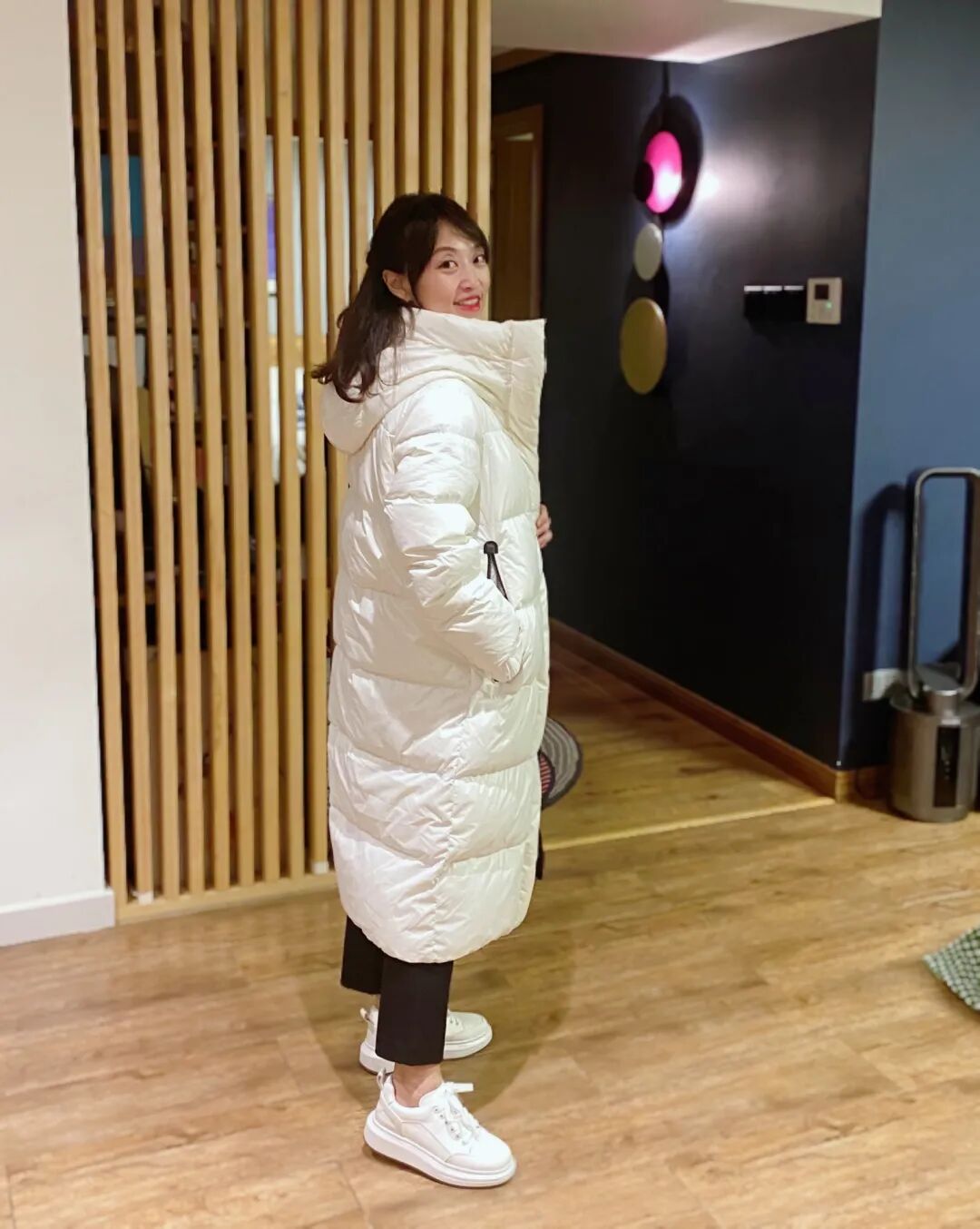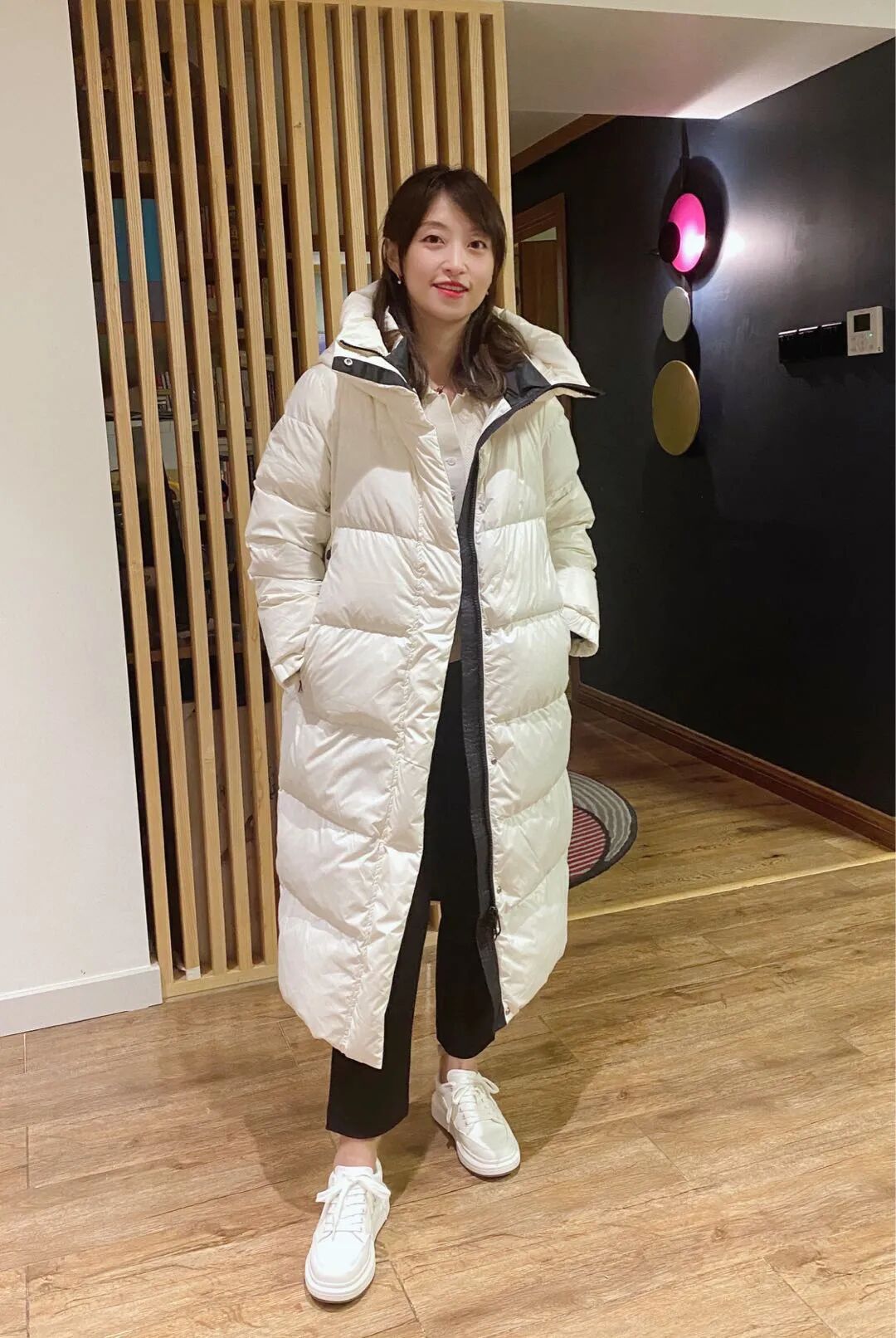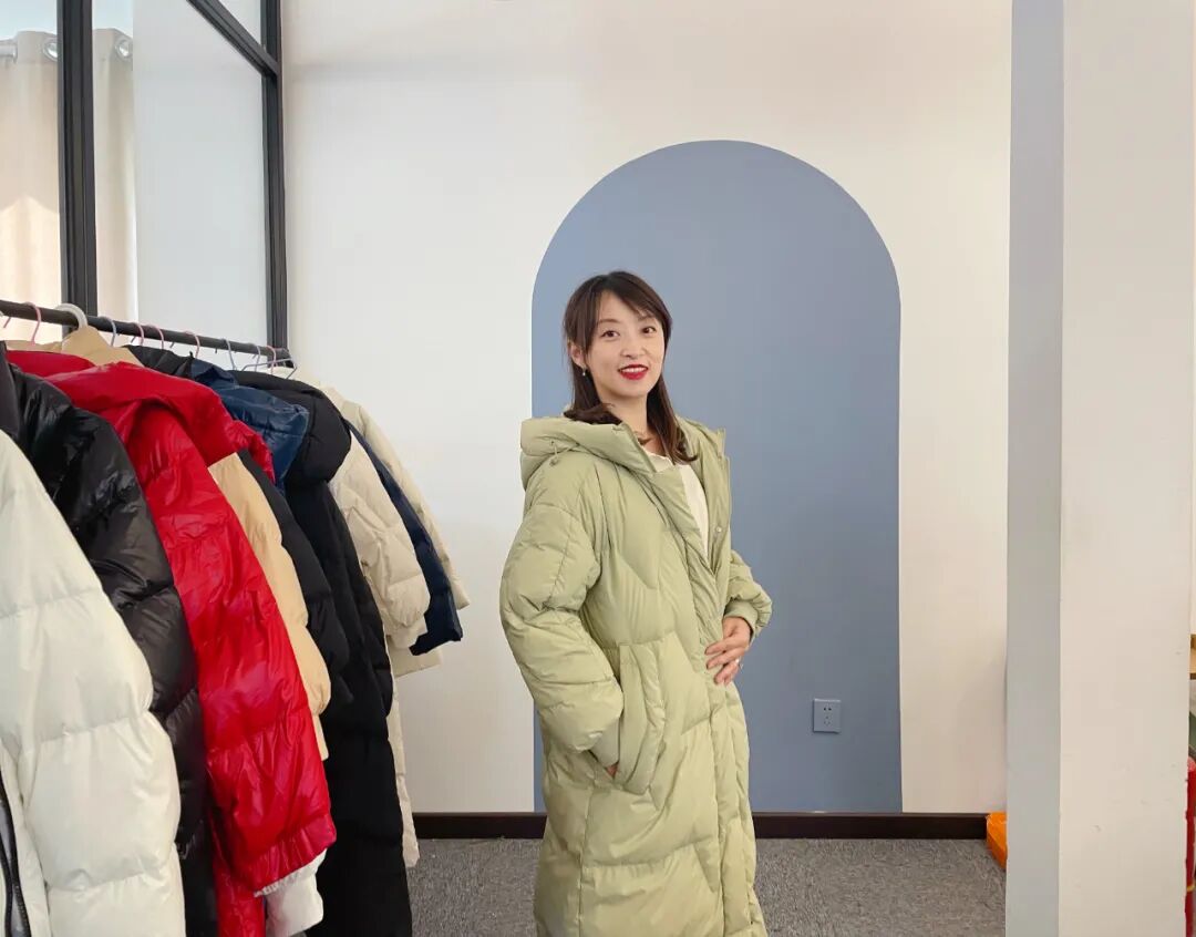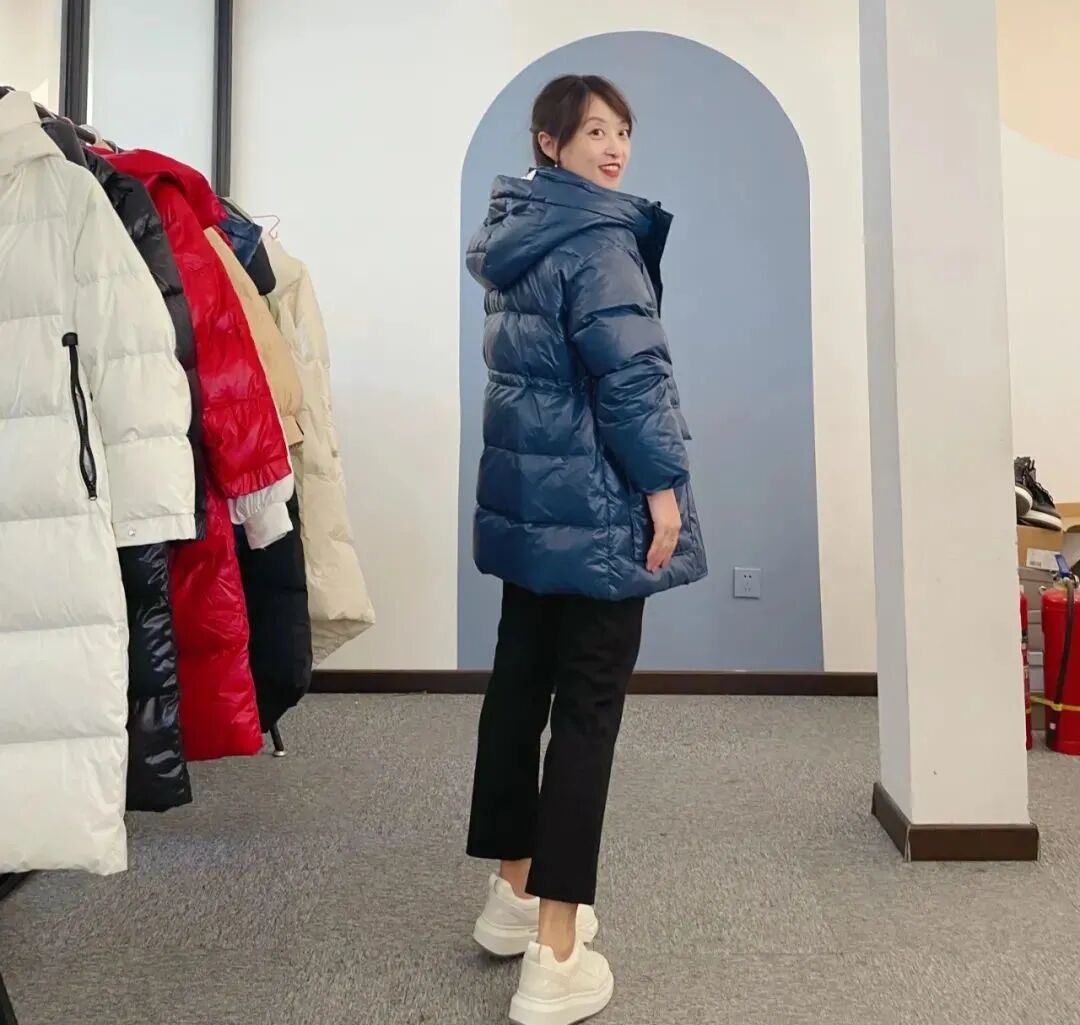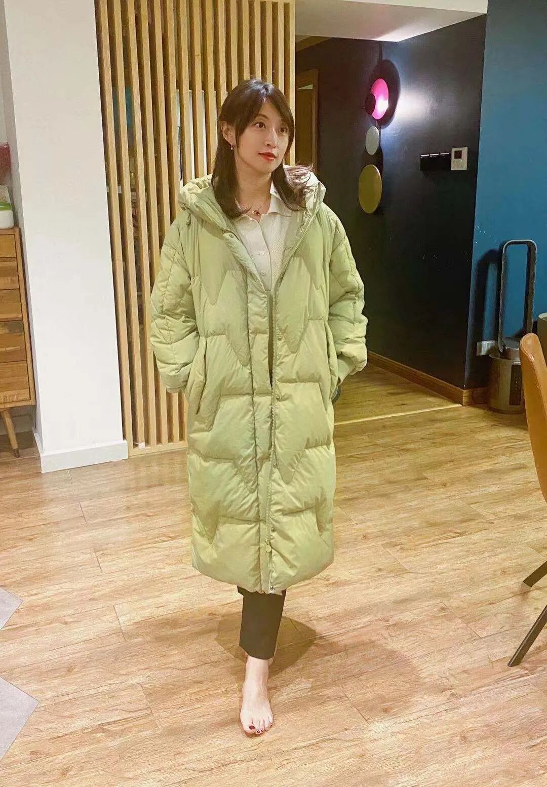 这一款是中长羽绒服的经典版型,如果特别长到脚踝会显矮,而且走路不方便,所以这个长度刚刚好,下摆有一点廓形,但腰部收腰,拉链拉上非常显瘦。