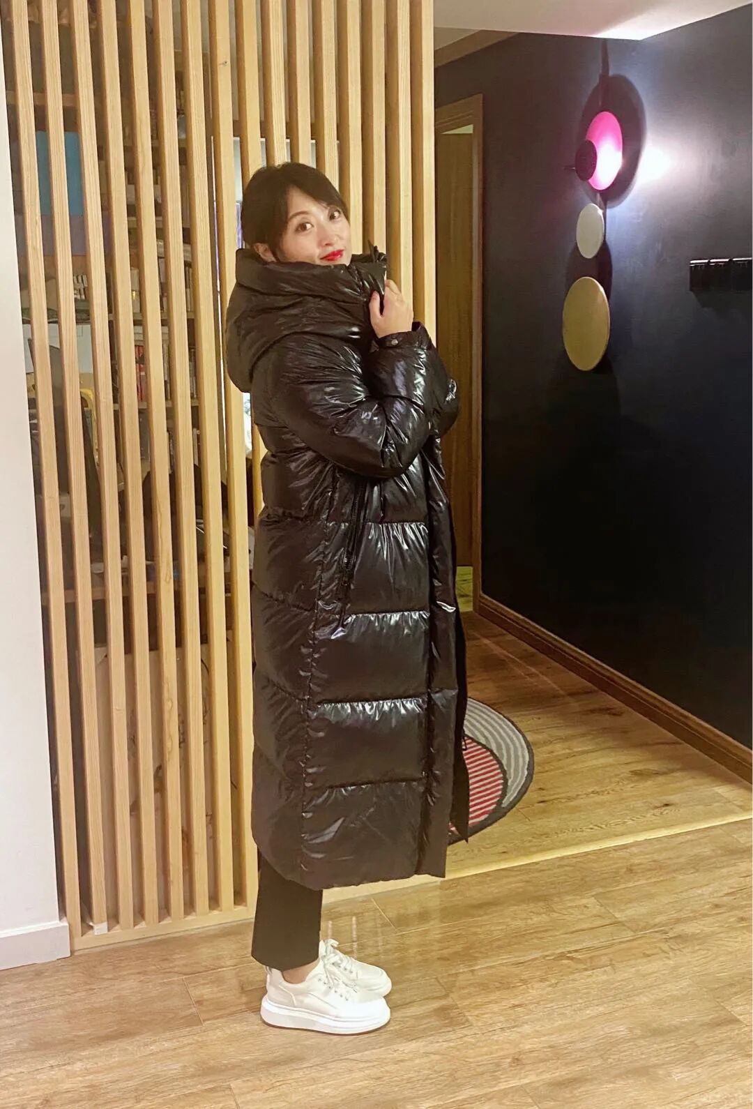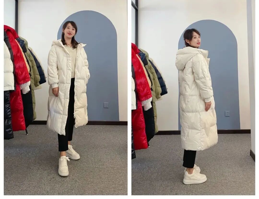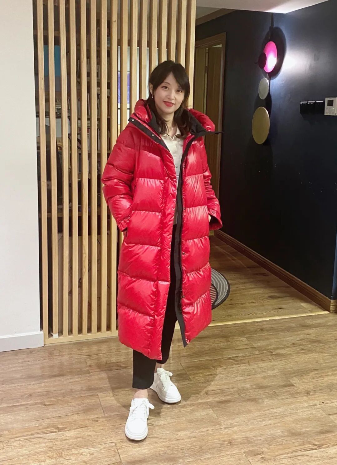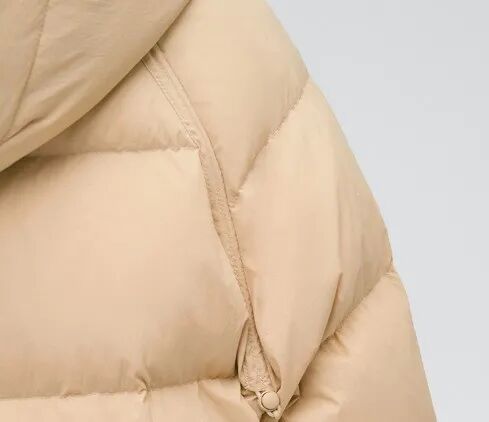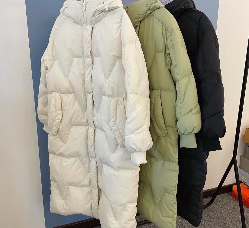 这一款是中长羽绒服的经典版型,如果特别长到脚踝会显矮,而且走路不方便,所以这个长度刚刚好,下摆有一点廓形,但腰部收腰,拉链拉上非常显瘦。