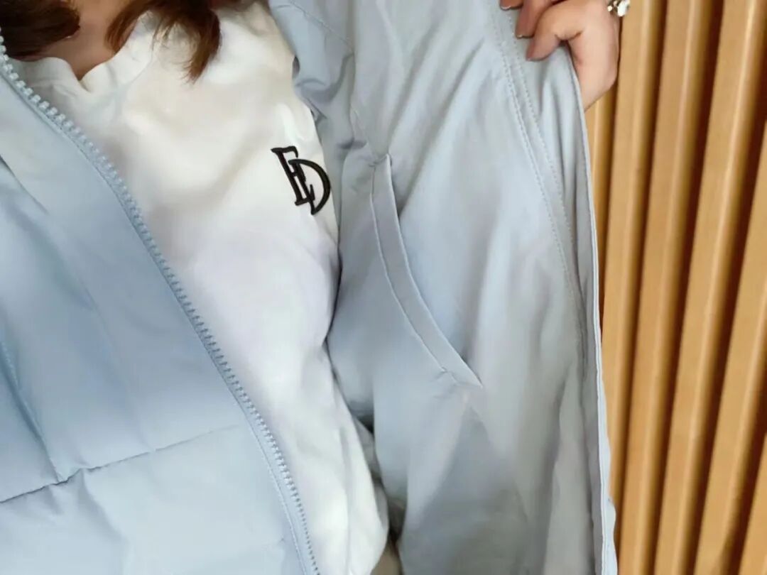 最后给大家选了一款亮面收腰,时尚感更强的短款羽绒服。