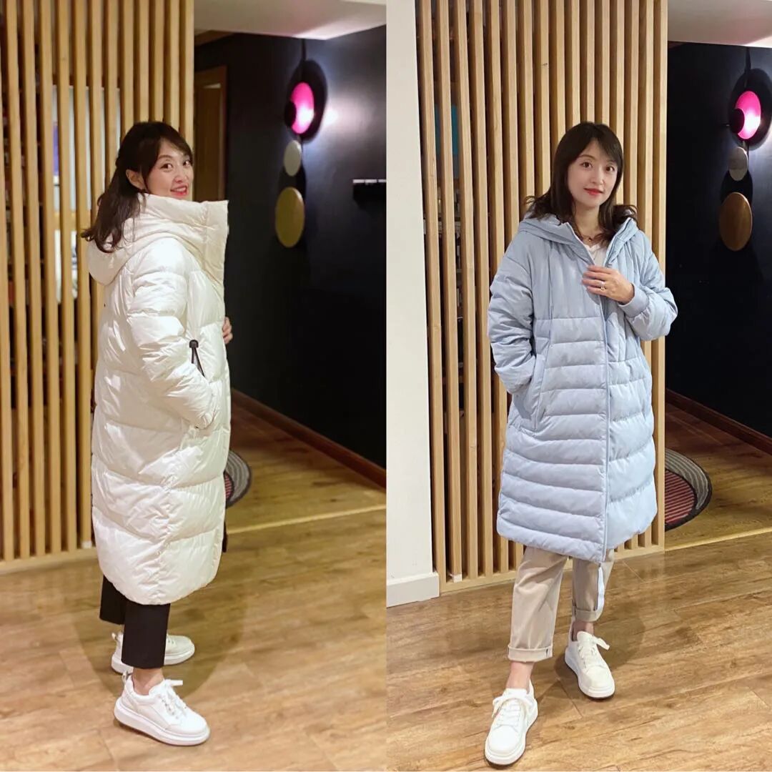 左边这件鹅绒长款的,原价2497,团价只要689,右边这件薄一点的白鸭绒,原价1197,团购价只要249。
