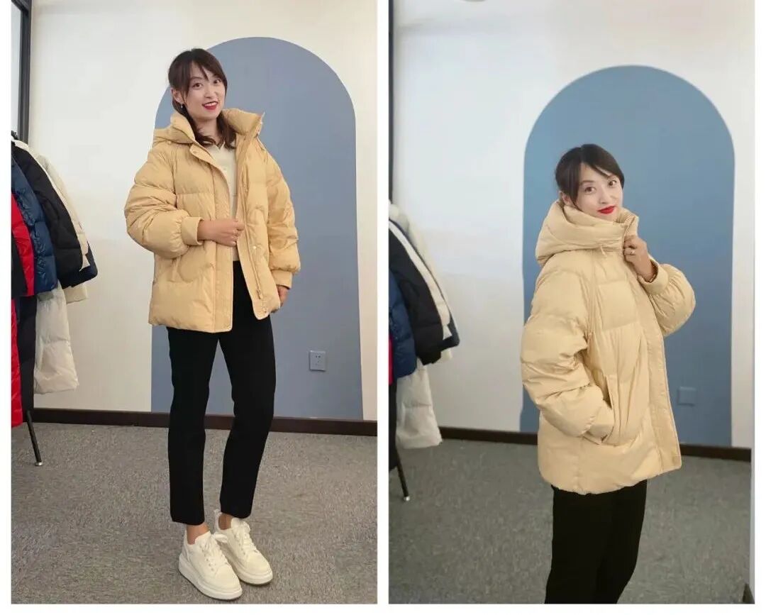 前面推荐的都是到膝盖的中长款,下面给大家推荐两款短款鸭绒羽绒服。