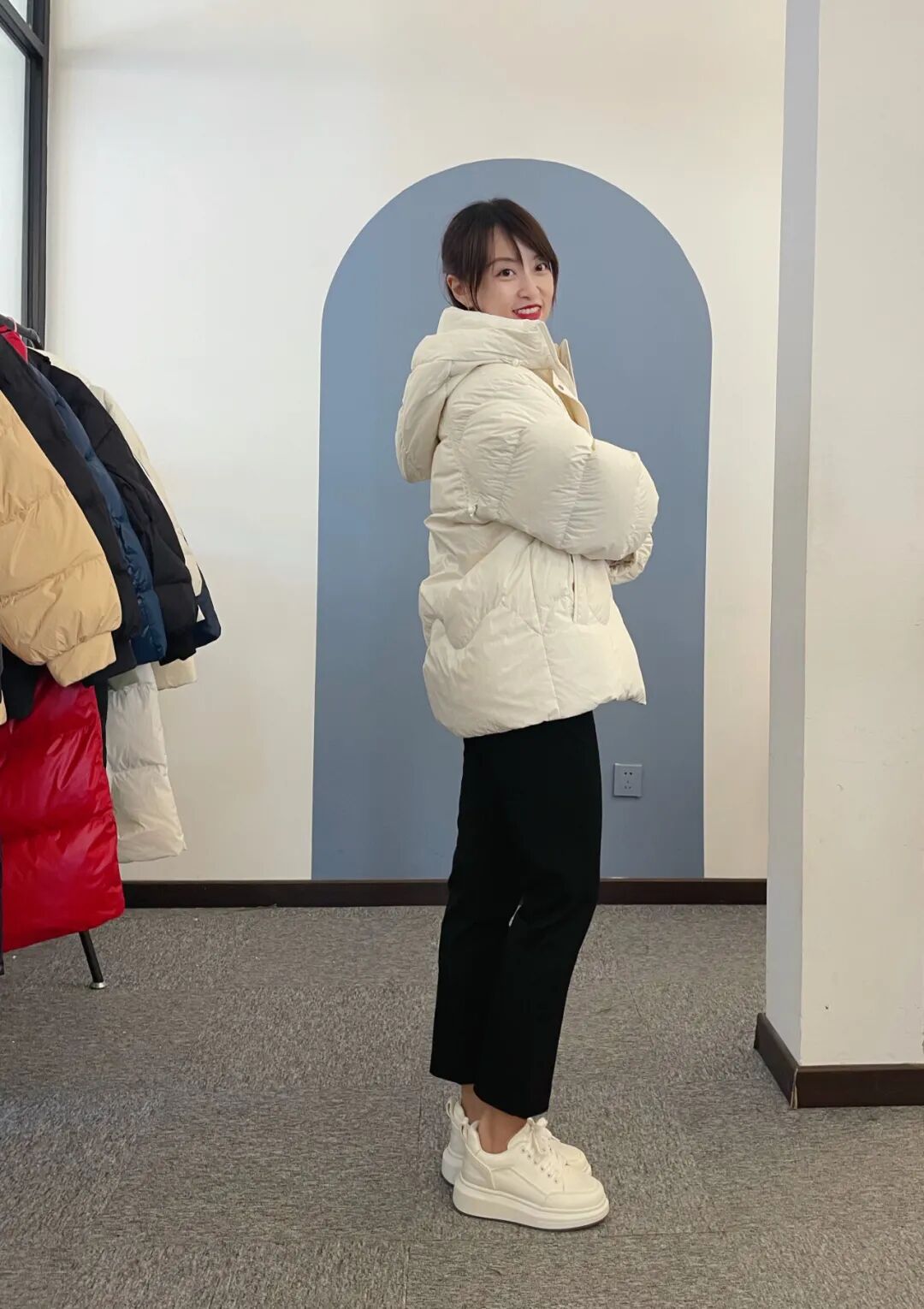 短款羽绒服,上身显高,加上对小个子妈妈很友好,所以我冬天不是特别冷的时候,就会选择短款羽绒服。