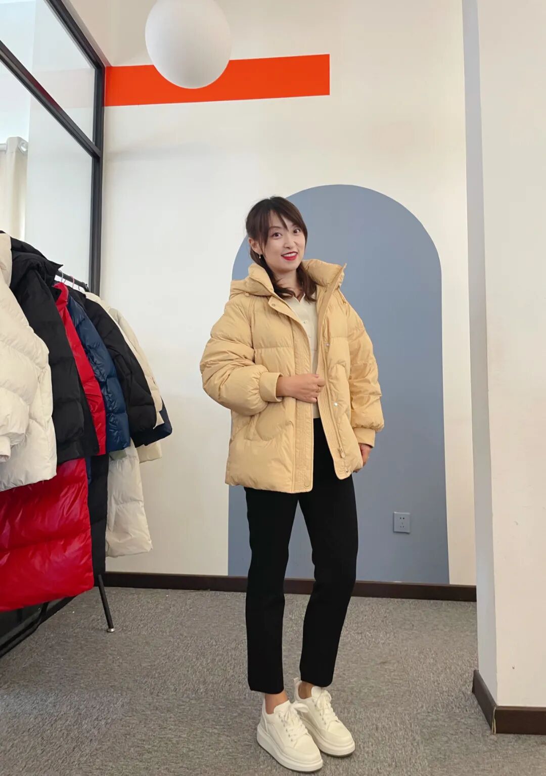 这一件羽绒服就属于上身轻盈不累赘,版型比较简约,可塑性非常强的款式,可休闲,可时髦,可复古。