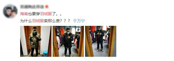 海南人也穿上了羽绒服,这可是大新闻啊。