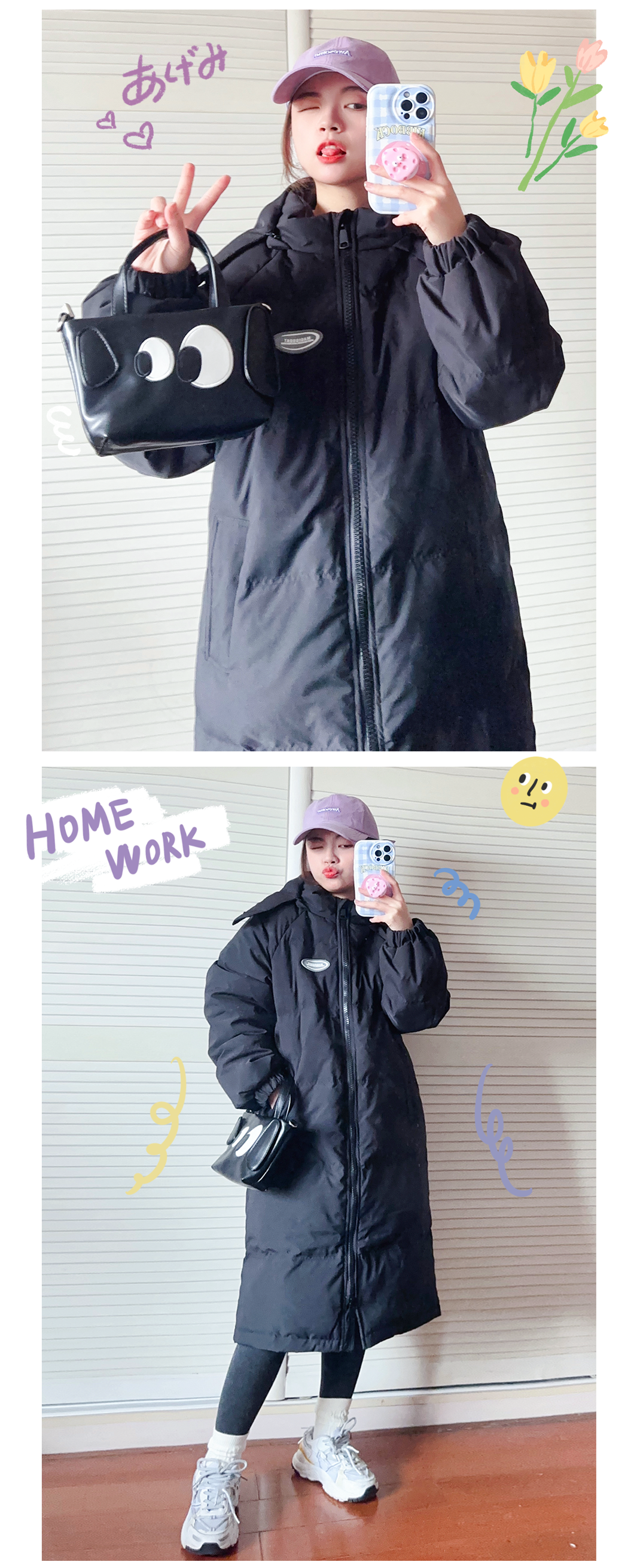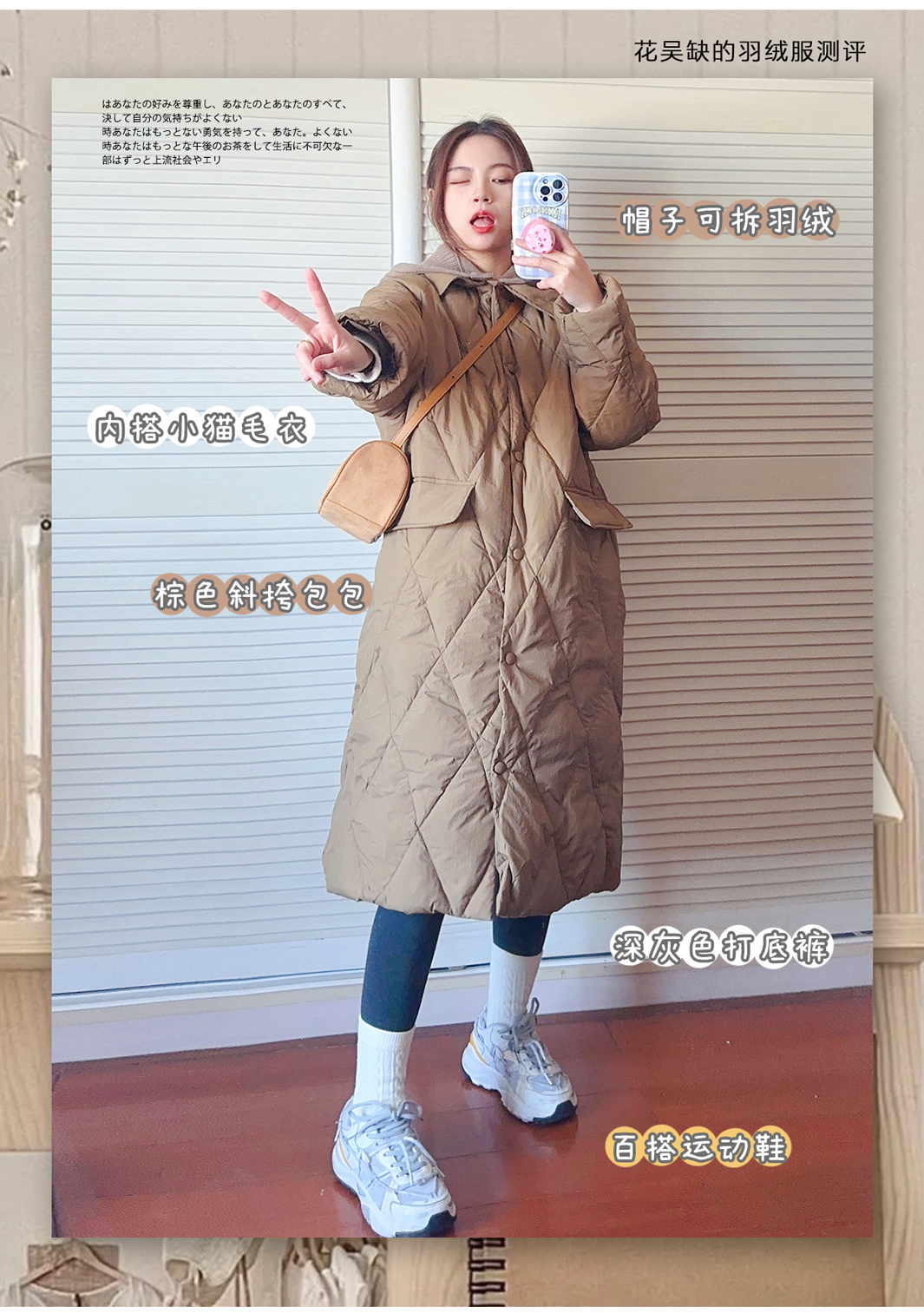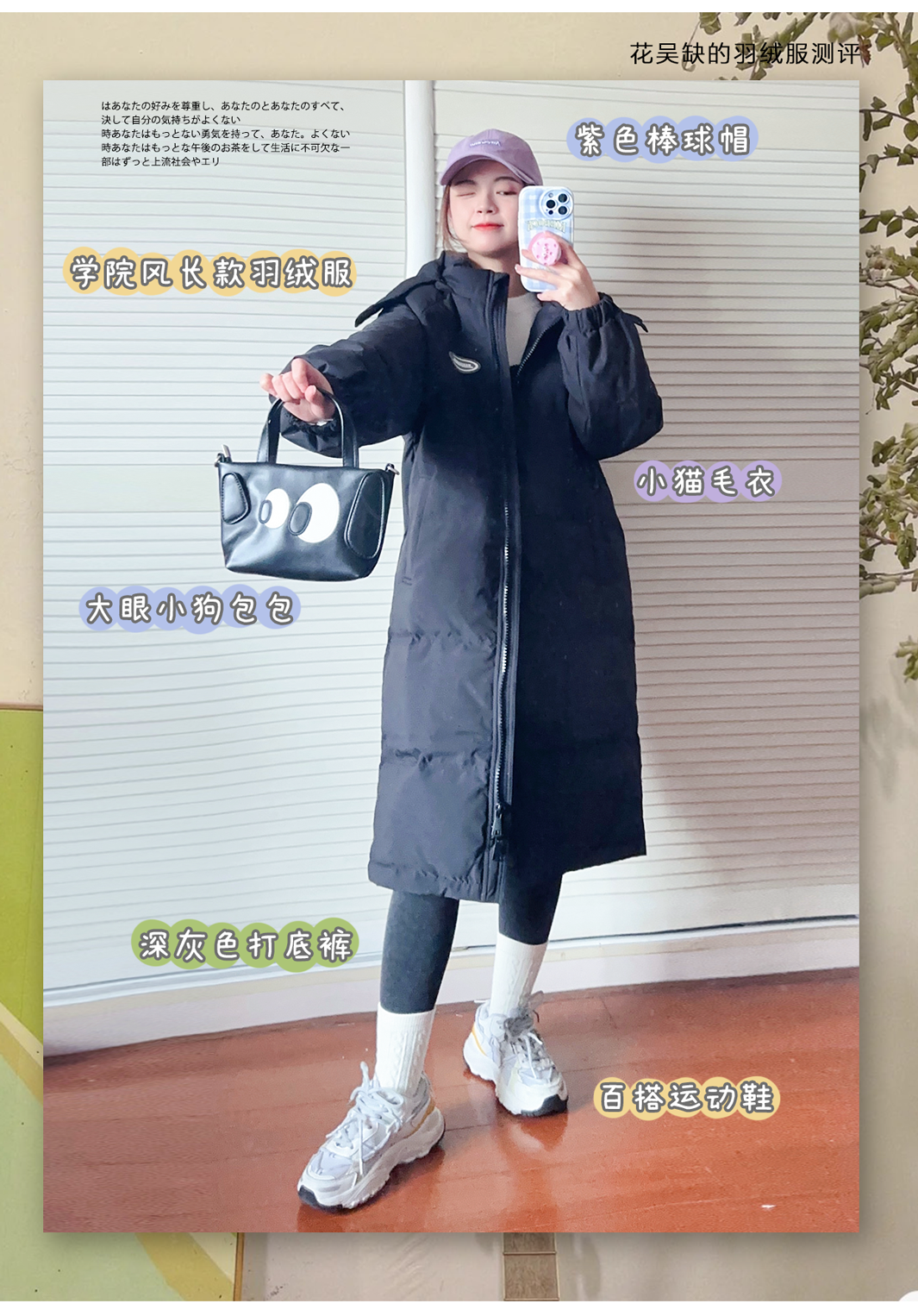 我从学生时代到现在都很喜欢长款羽绒服,就很有韩国女高学生的感觉,而且很多女团也很喜欢穿这种,买好了真的不压个子~