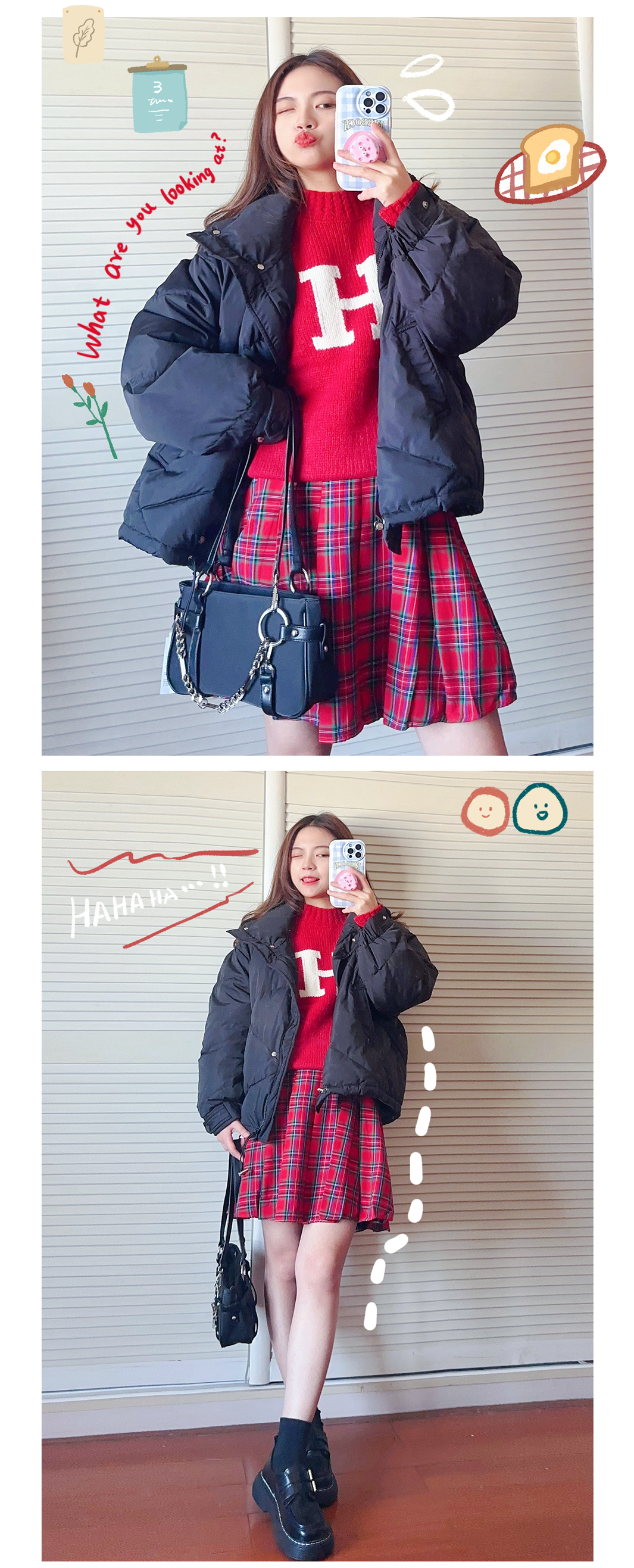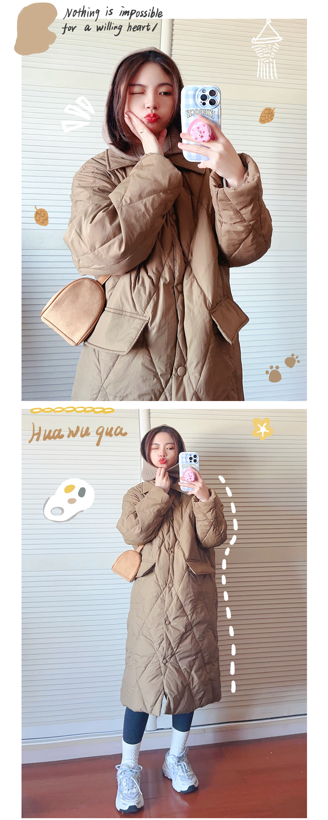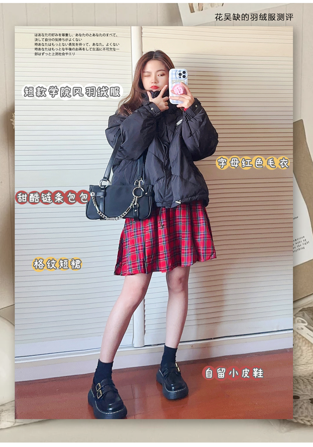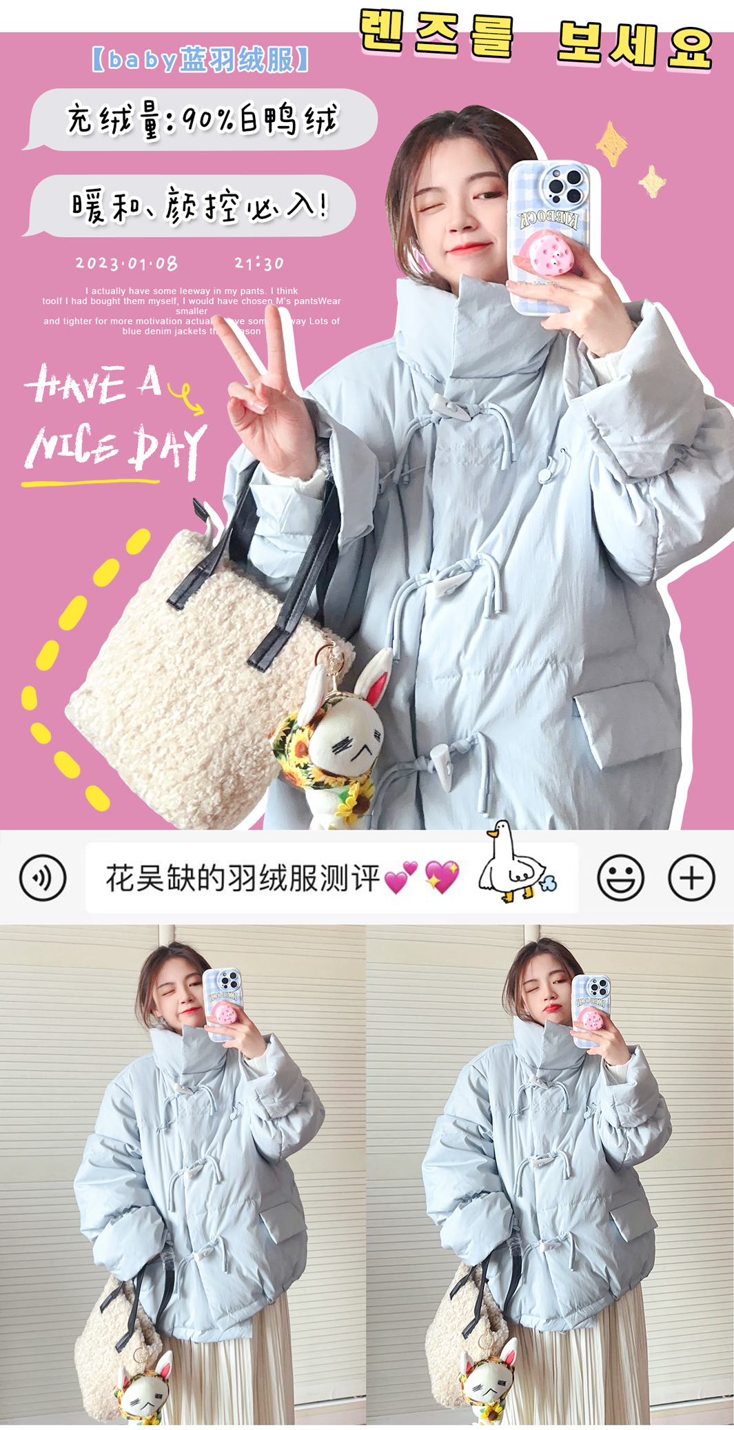我从学生时代到现在都很喜欢长款羽绒服,就很有韩国女高学生的感觉,而且很多女团也很喜欢穿这种,买好了真的不压个子~