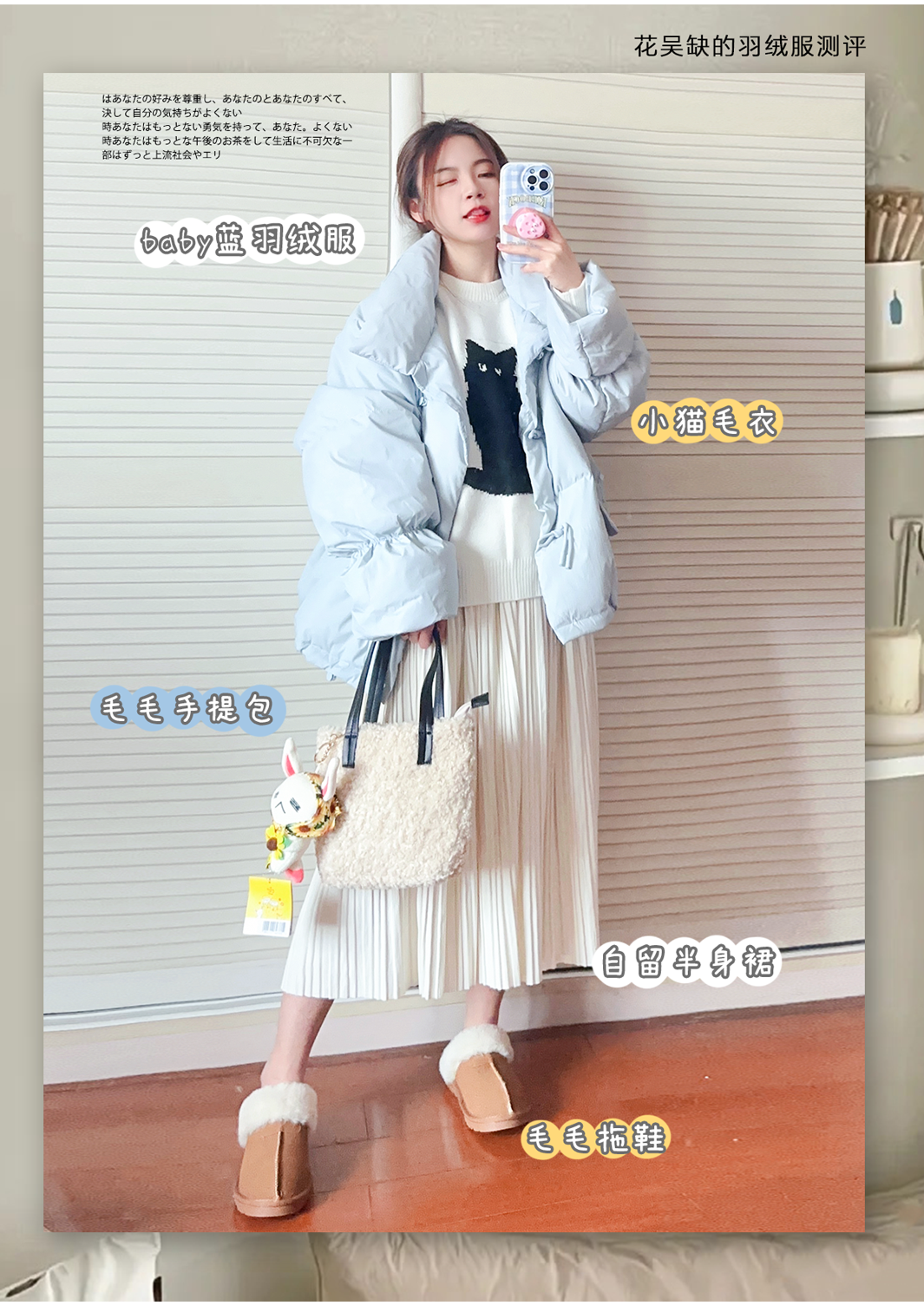 这件刚拿到的时候有一点点小失望,可能是觉得没太大惊喜吧。穿上身之后第一感受是,真的好暖和啊!!是这一期上身温度飙升得最快的一件,所以怕冷的宝宝我是最推荐入手它的。