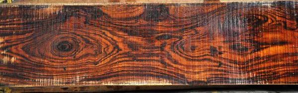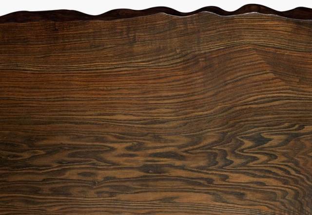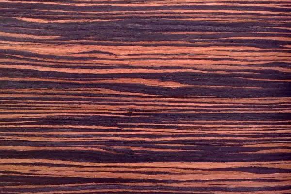 ② 非洲花纹乌木:此花纹乌与条纹乌均为同一种树木所出的料,只是开料方法不同而使得花纹不同,条纹乌为纵向开料,花纹乌为斜向开料。