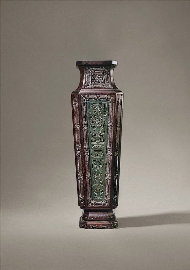 紫檀木最早只用于制作些小件物,后来,紫檀木的色泽与良好的物理特性颇受宫廷及民间的喜爱,地位随之攀升。到了明晚期,文人发现了紫檀木的沉穆雍容之美,倍加推崇,紫檀木多制成文房用具,如镇纸、笔筒、炉、瓶、盒等。清代初年,紫檀木用在家具上较多,大多被制成桌椅、几架、箱柜、盒匣等。