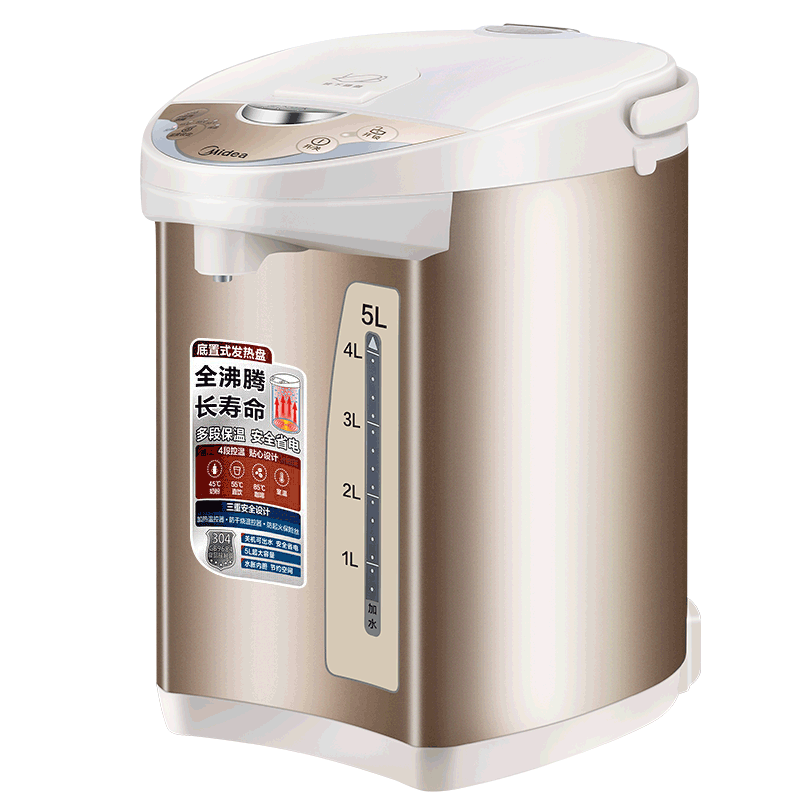 美的(Midea)电热水瓶热水壶电水壶304不锈钢多段智温控净甜5L大容量家用双层防烫开水壶烧水壶Power302