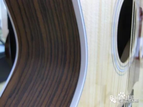 接着说指板的材料指板通常选用玫瑰木 一些高端的 会选用乌木 这种木材更加坚硬刚才我们看到的这些指板就是玫瑰木好一些的琴 指板是亮泽有光度的 不是干涩的 如果你感觉自己的琴很涩 可以去买一瓶指板油 滴一些在指板上 用软布擦拭均匀 充分吸收