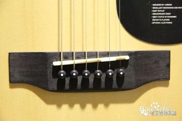 琴码琴码上有下弦枕(白色的条)和固弦锥(黑色的锥)是固定琴弦的另一部件 琴弦上面由琴头固定 下面由琴码固定实际上 琴码有六个孔 图片看不出来 固弦锥穿过六个孔 将琴弦固定住 同样要检查琴码与面板的粘合是否牢固
