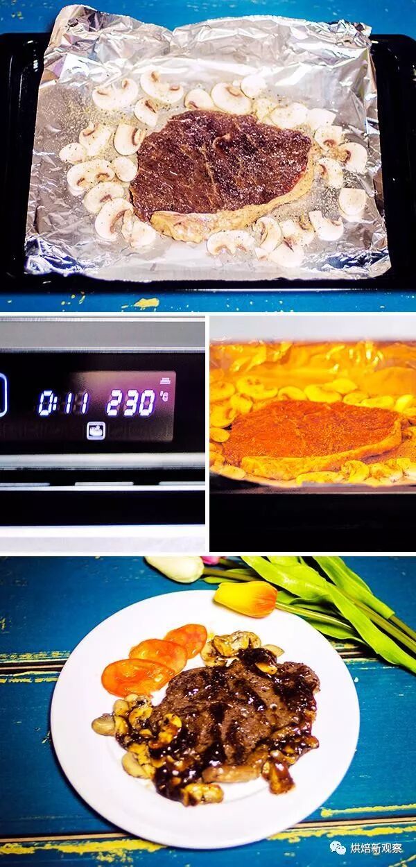 然后是烤牛排,这个我自己做,有时候会煎的比较老,也掌握不好什么时候翻面,主要是火候掌握不好,用西屋蒸烤箱的时候,还有点担心的,因为菜单上,没要我翻面。我在烤盘上,铺好锡纸,稍微撒了点油,然后把牛排放上去,边上放点蘑菇,嘻嘻,下次放点青辣椒,红辣椒,会有烧烤的感觉。。撒点黑胡椒,按照菜单的程序F-2,开始烤。。11分钟就好了。。打开一看,没有焦,切开了,也没有生的地方。。平时我煎牛排,我爸爸都不吃的,今天竟然吃了,还说很嫩。。这是嫌弃我吗。。。西屋蒸烤箱,征服了我爸爸。