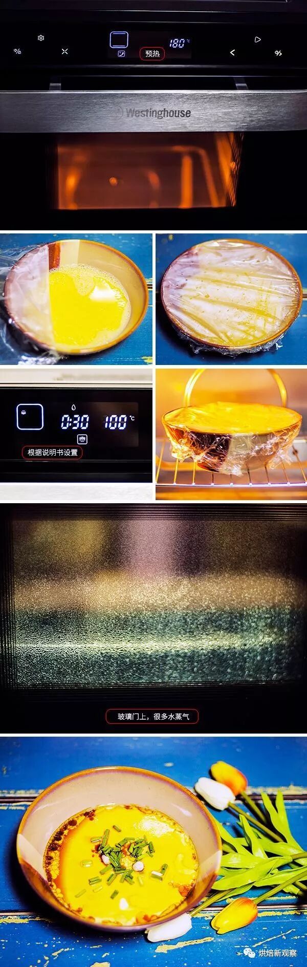 开始使用,使用前先预热一下,预热的时候,有一股子味道,第一次使用类似的产品,似乎都有。预热后,开始第一道菜,这是我最喜欢吃的蛋做的菜了。。水煮蛋干巴巴的,煎蛋酱油太多,只有水蒸蛋,营养好,又好吃,不过按照食谱,1:1放水的话,我觉得水太少啦,蛋有点厚,下次要多放点水,我喜欢那种像果冻一样的感觉,更清爽。使用的时候,一直在想,是不是要一直盯着,结果看了一会觉得自己太无聊了,真的很方便,把蒸蛋之前的都做好准备,设定好时间,就是用的菜单里的E-6,然后就看到玻璃门上,慢慢的有了水蒸气,然后灯自己灭了,还挺省电,之后就干自己的事去了,好的时候,发出滴滴的声音,灯也亮了。注意额,打开的时候,离远点,水蒸气要冒出来,不要被烫到。。然后用送的手套把水蒸蛋拿出来,一看,真不错,比用高压锅安全方便多啦。。特别适合现在的年轻人使用!