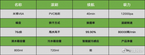 米博V6A这款洗地机采用的无滚布PVC地刷设计,这个免去了毛发缠绕、洗滚布、滚布发臭的麻烦。独立双电机驱动智能预判方向,提供12000pa澎湃吸力,走位丝滑,清洁更轻松。全机身降噪优化76dB,噪音值不算太大也不算太小。电力续航为40分钟每次。800ml清水箱和720ml污水箱容量设计。不足之的是,和同价位段的常规滚刷布洗地机对比,风干型的顽固污渍处理效果要稍弱于带滚刷布的,并同时硅胶地刷的设计对于油污等吸收不是很好,如果家里对重油污垃圾处理需求很大的话,带滚刷布的滚刷会更好一点。