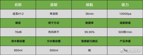 追觅H12整机的配置齐全,该有的都有。整机重量约5kg,搭载4000mah电池续航36分钟,同时清水箱容量850ml,污水箱容量为500ml。在水箱容量方面,污水箱容量太少,中途需要换水才可以。20AW吸力地刷转速74000RPM,清洁效率还行,只要不是很顽固的重油重污。同时采用银离子抑菌等除菌模式,自清洁模式完善。不足的是,机身没有采用干湿分离设计。采用的是热风烘干滚刷设计,绒布滚刷在每次烘干的时候会出现不完全干燥的情况,过程较慢,烘干效果一般。