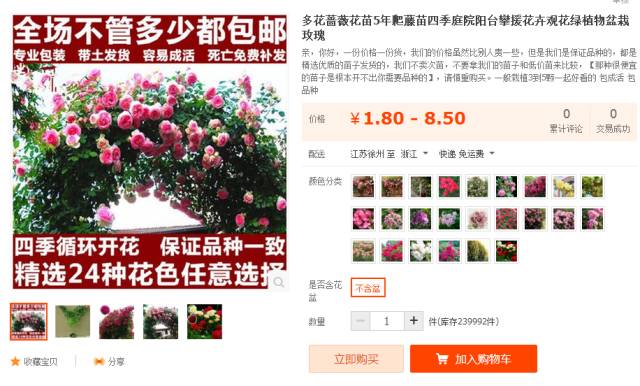 相信很多人都被下图的月季花和无良商家号称五年以上大苗、四季循环开花、多种花色任选等等谎言欺骗而购买过。