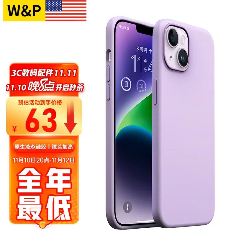 W&P 【美国】苹果14手机壳 iPhone14promax保护套全包防摔液态硅胶软壳男女款 苹果14【浅紫色】真液态硅胶·6.1英寸