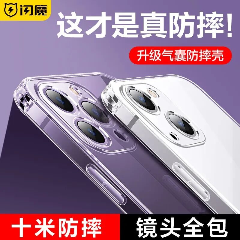 闪魔 苹果13手机壳 iPhone13promax气囊防摔超薄保护套 镜头全包透明硅胶软壳 苹果13【全透明】十米防摔^透出裸机