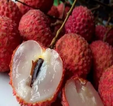 无论多么新鲜的荔枝,都不是完全鲜艳的红色,而是带有一些杂色。新鲜荔枝的表皮可能红中带绿,可能红中带白,可能浅红中带暗红,这是很正常的,这样一般都比较新鲜。如果果皮上出现黑色或者褐色,则说明荔枝已经变质,购买要注意。
