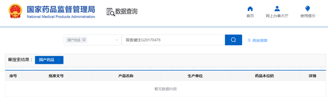 输入批准文号后查不到具体信息↑